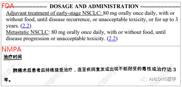 ▲FDA和NMPA说明书中奥希替尼辅助治疗时间