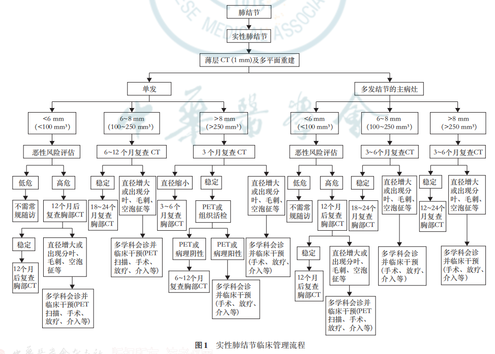 关于肺结节的管理和随访,早期肺癌诊断中国专家共识(2023年版)建议根据结节的密度和大小对其进行分层管理。